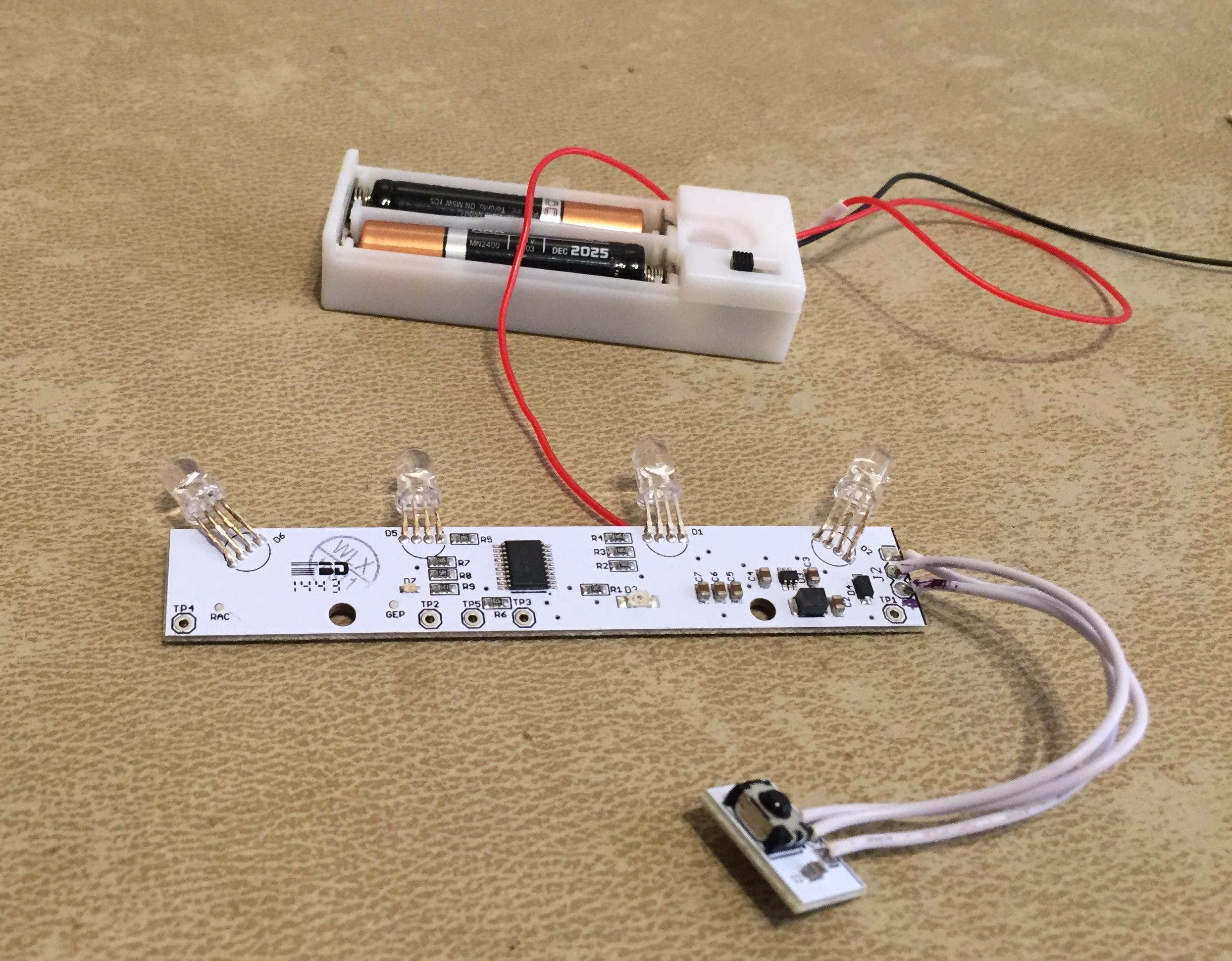 The light pipes are a new development. The LEDs appear to be 5mm RGB, through-hole components. They are inserted into one end of a short piece of tubing and then the light pipes are poked into the other end. The thin core light conducting portion of the light pipe can be seen best in the end view of the tube on the right. The tubes are flexible, but have some conformational memory. They work pretty well. These look a lot like some retired Sparkfun products. Not a lot of info about these out there.
